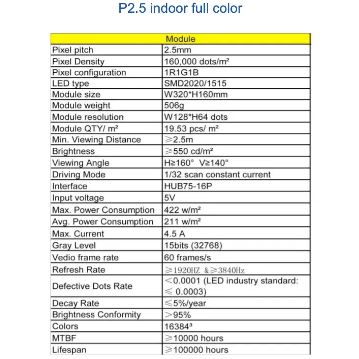 1. Pixel Pitch:P2.5mm
