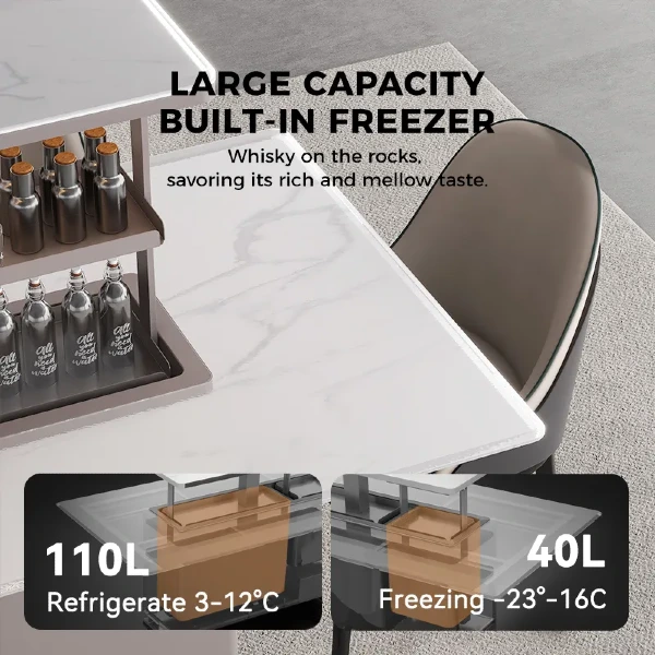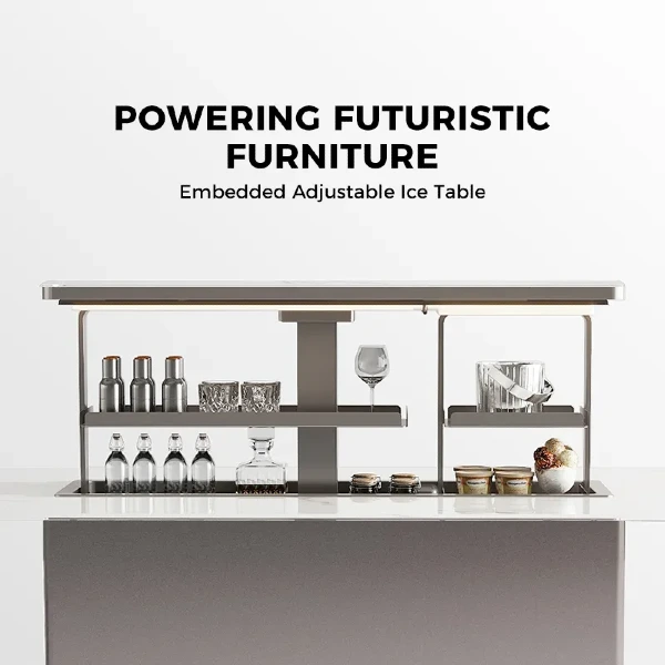 Mesa Inteligente con Elevación Eléctrica y Refrigerador integrado CB-150 A74xL100xL200 Cm Blanco